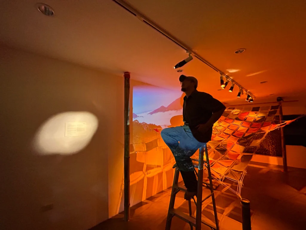 ส่วนงานของชายในชื่อ “ความละเอียดอ่อนของชาติและวัฒนธรรม” เป็นการต่อยอดงานวิจัยของเขาเอามาทำเป็น Installation Art ที่เล่นกับภาพเมืองที่ฉายออกมา เพื่อสื่อสารความสัมพันธ์ของมนุษย์และธรรมชาติอย่างแท้จริง