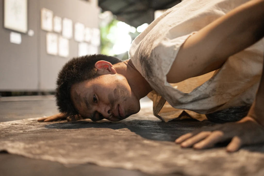 “งานที่ว่าอยากก้าวข้ามขีดจำกัดของตัวเองคือ ออกมาทำงาน Performance เป็นการทดลองของเรา และเป็นการเรียนรู้ศิลปะของการแสดงว่ามีกระบวนการคิดยังไง ทำยังไง เราอยากเอาอะไรออกมาจากตัวของเราออกมา หลักๆ ก็เป็นแบบนั้นเลย เป็นส่วนเรียนรู้ที่ทดลองเลย”